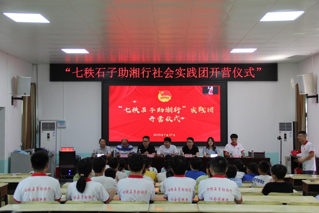 7月29日下午,“七秩石子助湘行”社会实践团开营仪式在鲁塘中心学校成功举行。中国石油大学 (北京) 团委书记周学智,郴州团市委副书记梁园宇出席会议并讲话,北湖团区委书记马超怡致欢迎辞,石油工程学院党委副书记刘东东、教授卢运虎,鲁塘镇党委副书记陈德福,鲁塘中心学校副校长邓季出席开营仪式。