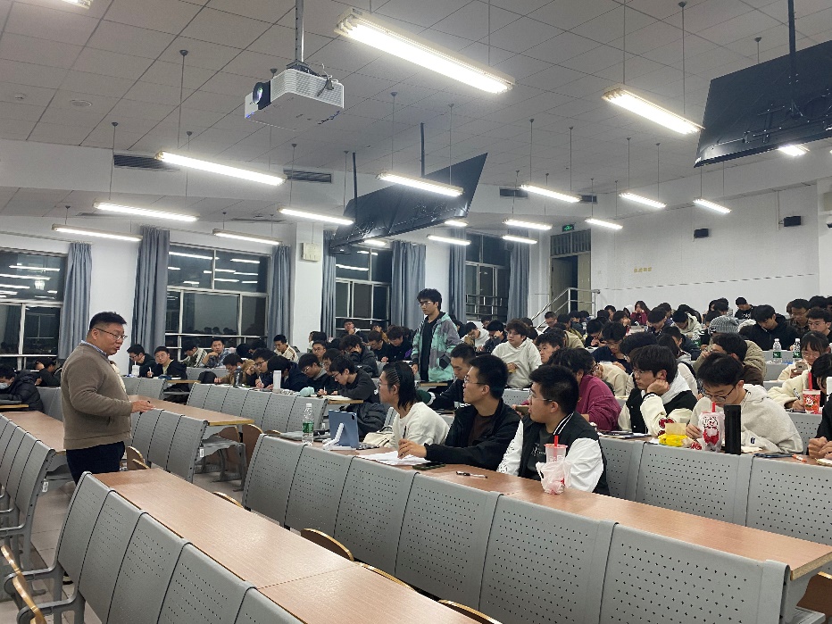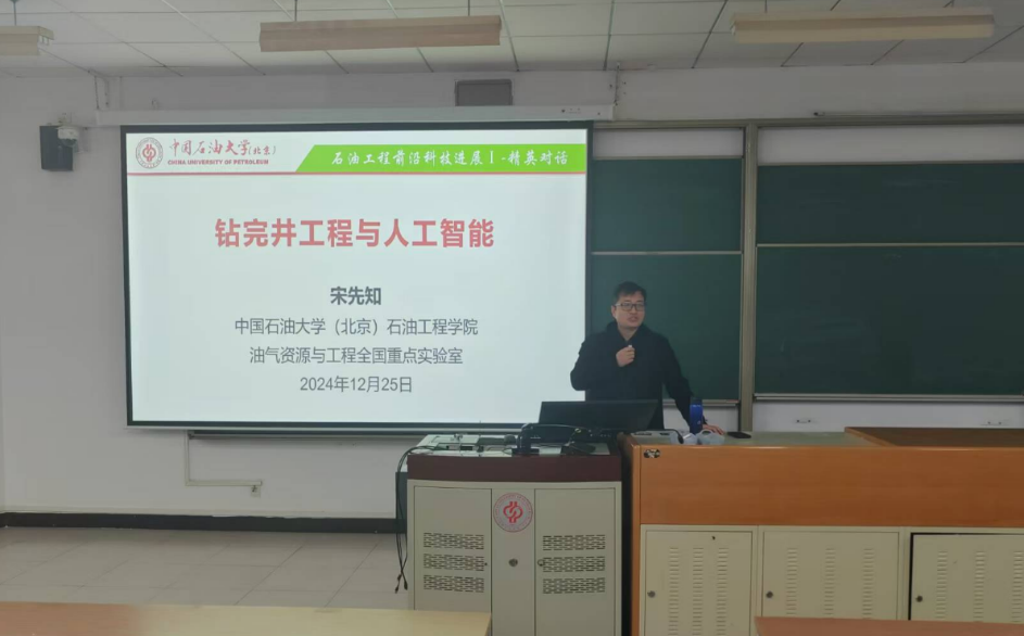 芮振华教授的题目是《二氧化碳捕集、利用与封存现状与展望》,介绍了自己所带领的研究团队在CCUS方面的前沿工作,并与在场学生积极互动,回答学生关心的问题。王敬教授的题目是《复杂及非常规油气藏开发理论与技术挑战》,作为曾分管本科教学的副院长,他介绍了该课程设置的背景和思考,引导学生关注前沿并积极投身专业研究。于海洋教授的题目是《页岩/致密油气开发现状与技术》,结合自己的专业成长经历,鼓励学生把石油工程专业作为个人职业生涯的无悔选择。吴克柳教授的题目是《非常规油气藏开发技术进展与展望》,并介绍了自己海外学习和科研的体会。张媌教授的题目是《氢能利用及地下储氢研究进展》,介绍了地下多孔介质渗流理论与数学模拟,描绘了地下储能的光明前景。王宴滨教授的题目是《深水钻井工程技术进展与主要挑战》,带领学生把钻井工程的学习和研究视野推向深蓝。卢运虎教授的题目是《非常规油气革命下岩石力学的使命与创新探索》,引导学生进入万米井深、传承应用力学的根脉。宋先知教授的题目是《钻完井工程与人工智能》,让学生身临其境地感受到人工智能在钻完井工程的高效应用,展现了智能学科交叉带来的勃勃生机。作为学院院长,他还勉励同学们打下扎实的专业基础,成为石工学科和行业的后备人才。