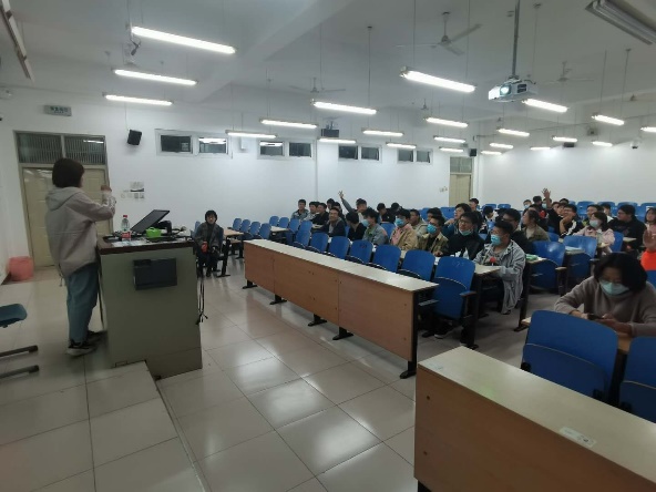 首先,主讲教师王玥乔就大学生如何适应大学生活,如何探索寻找真正的自我开展一系列理论知识的讲解,并通过小游戏激发学生的兴趣,讲座氛围轻松愉悦,同学们积极与老师互动,回答老师提出的各种问题。