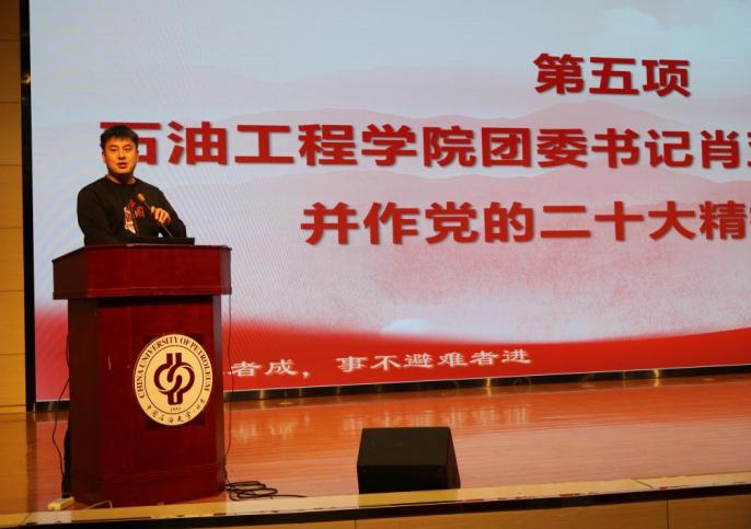 自10月份以来,石油工程学院领航团校2.0紧扣学习宣传贯彻党的二十大精神,累计开展能力提升、精神熏陶、素质拓展等6个方面的活动,将铁人精神内化于心、外化于行,实现了青年学生理论学习有收获、思想政治受洗礼、工作技能得提升,打造了学生干部能力提升的平台和铁人精神传承的载体。