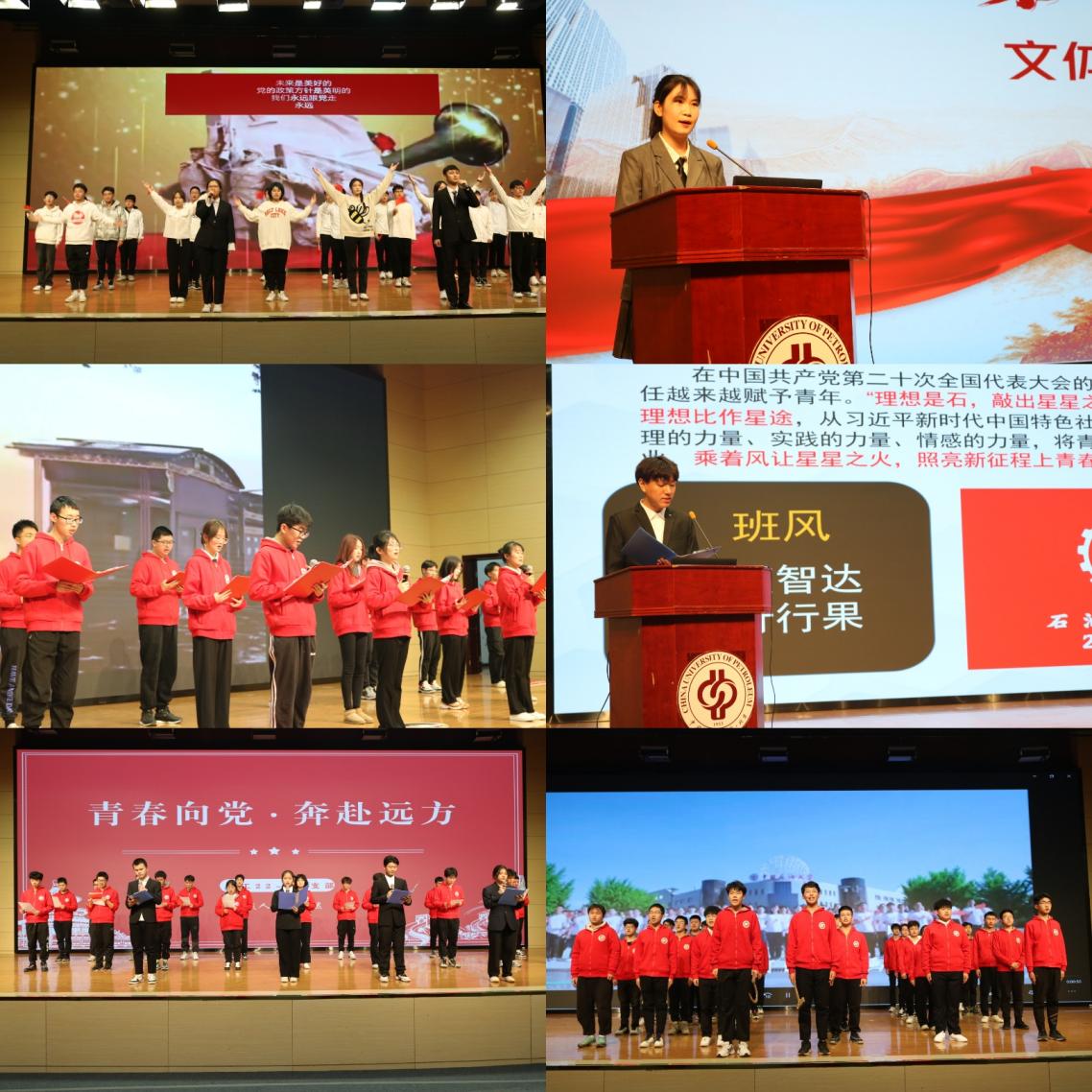 2022年领航团校2.0闭幕式以“学习二十大,永远跟党走,奋进新征程”团日活动评比作为结课内容,由“领航员代表结业分享”、“各领航小组汇报展演”、“党的二十大精神宣讲”等七个环节组成。石油工程学院团委工作负责人、相关辅导员出席会议。