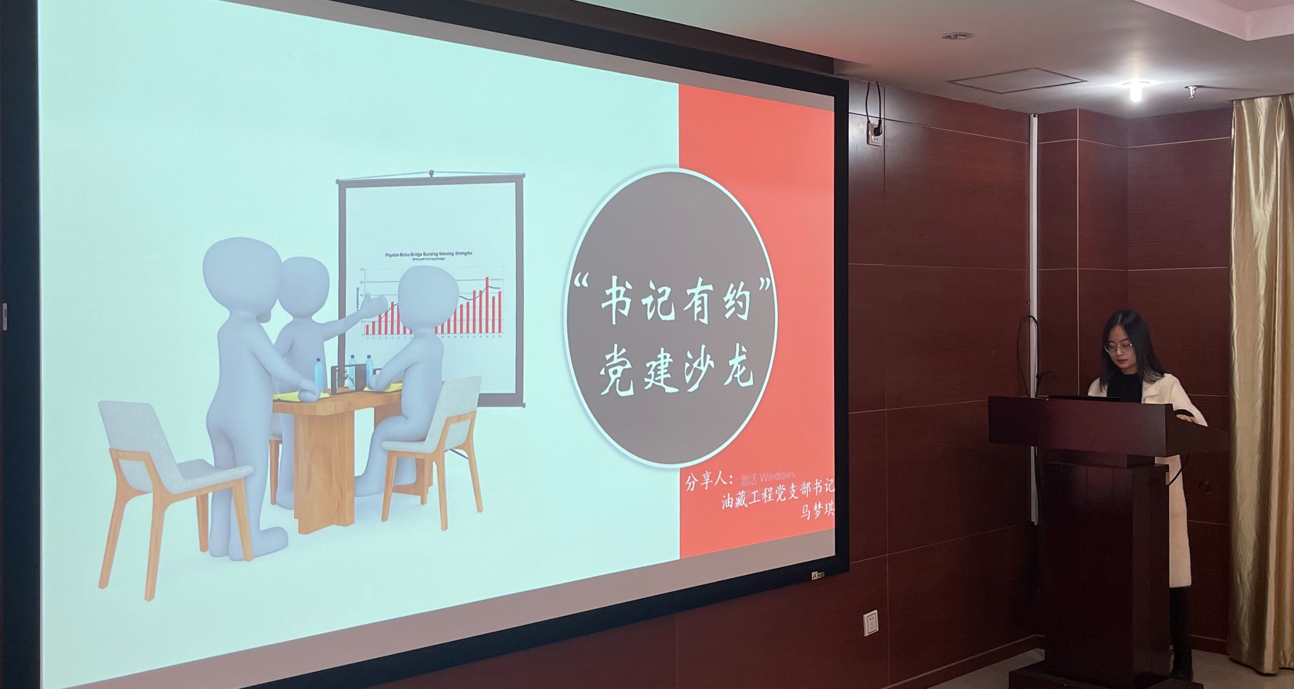 油藏工程党支部书记马梦琪以“抓好三点,练就三力”为主题进行分享,她总结了担任三年党支书的经验,从“大我”和“小我”两个角度出发,分享了支部集体建设和个人能力提升的相关经验。随后,与会人员积极发言讨论并分享感悟。
