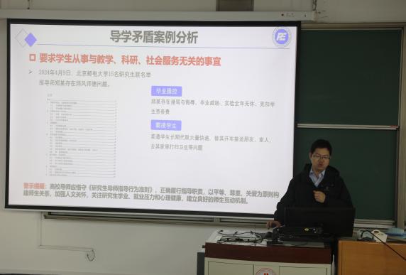 副院长卢运虎作警示教育专题报告。报告结合近期高校真实案例,深入剖析了导学矛盾以及科研经费使用等反面典型。报告警示全体教职工必须严守《新时代高校教师职业行为十项准则》和财经纪律,筑牢思想防线。