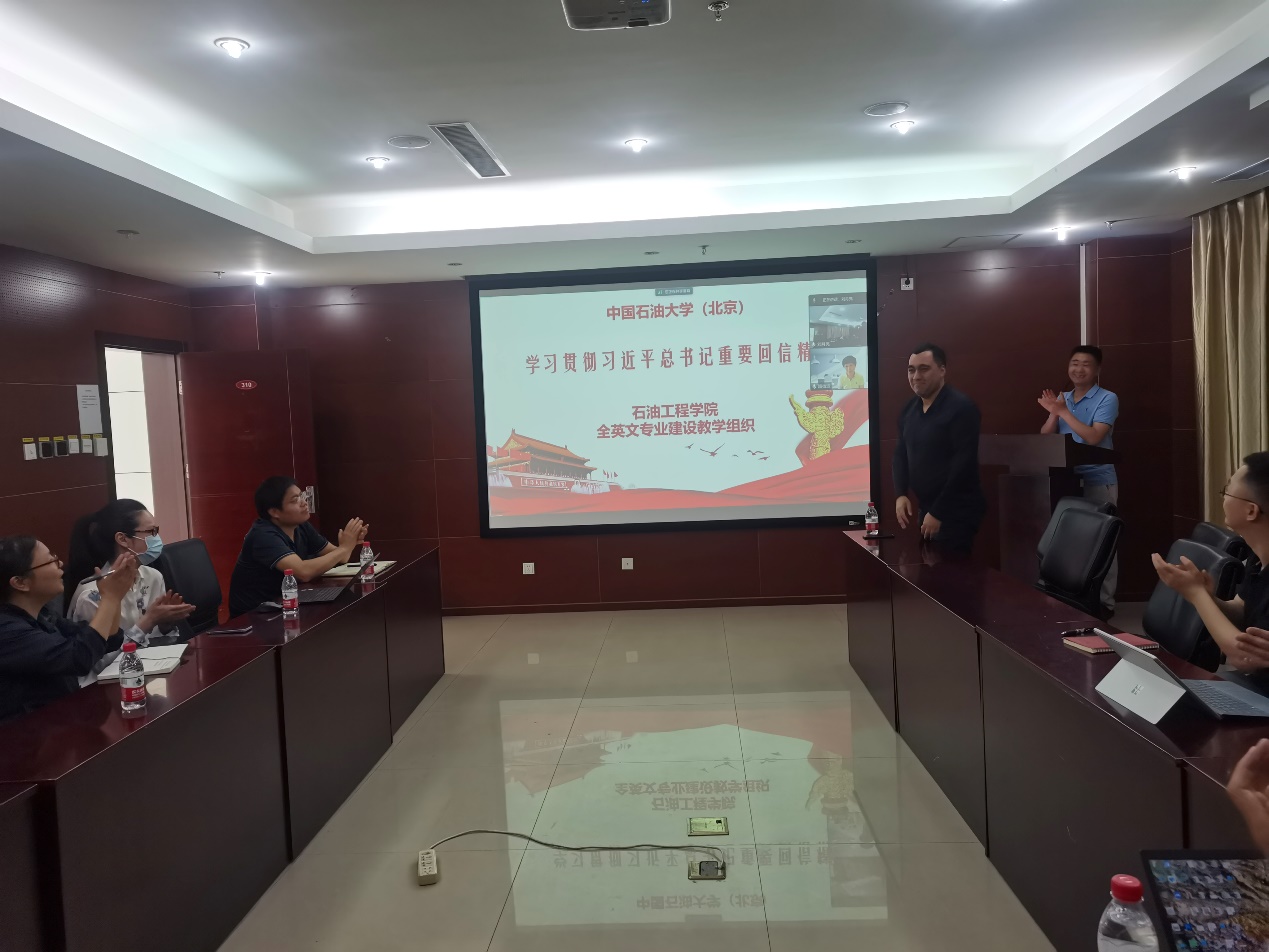 为深入学习习近平总书记给中国石油大学(北京)中亚留学生的重要回信精神,5月18日,石油工程学院留学生教学团队和全英文教学团队组织召开了学习重要回信精神专题研讨会。石油工程学院相关负责人、全英文教学团队和留学生教学团队成员参加会议。