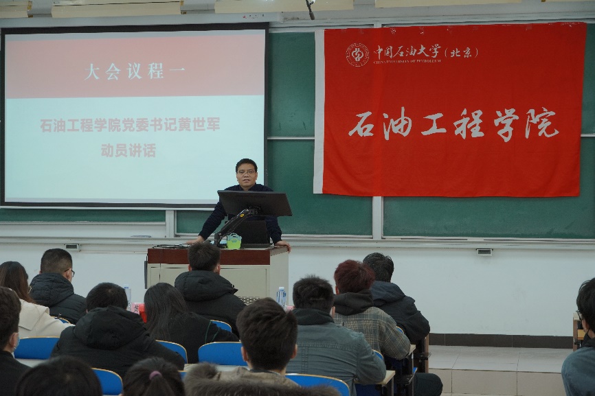 黄世军首先作动员讲话。他指出,本届大赛的主题与“碳中和、碳达峰”目标高度契合,在国际原油紧缺、能源安全紧迫的时代背景下更具有现实意义,石油高校更应该“把能源的饭碗牢牢端在自己手里”,以赛促学、以赛促研。同时鼓励参会同学踊跃报名参赛,并预祝大家取得佳绩。