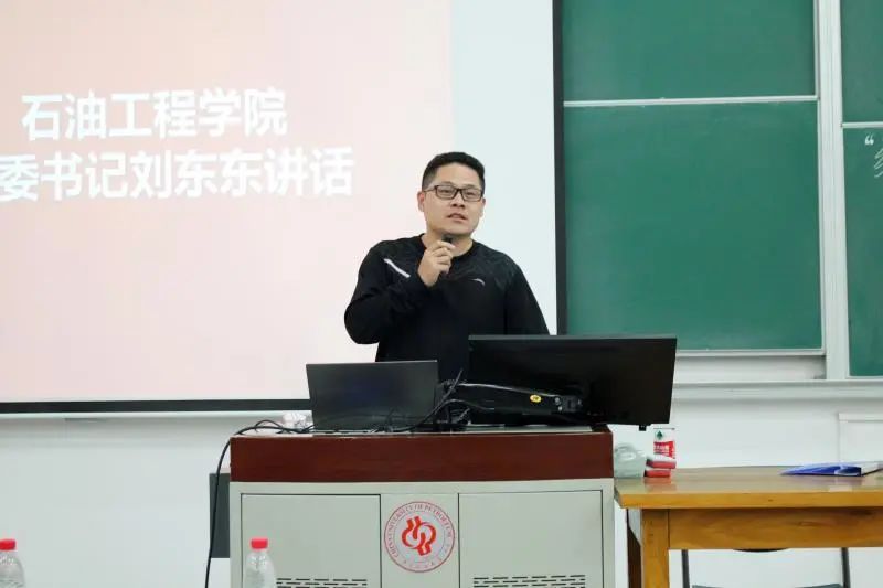 石油工程学院团委书记刘东东进行动员讲话。他从“宽度”、“深度”、“高度”三个方面对参加2020年红色奖励计划的新生寄予期望,一是立足“宽度”,鼓励大家拓宽知识范围,学习多种技能,成为综合性人才;二是聚焦“深度”,学好专业知识,深入探究专业学问,成为行业高端科技人才,三是站好“高度”,将个人发展融入集体,提升集体荣誉感,为集体争光。