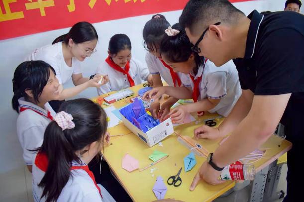 学院为希望小学的每一位孩子精心挑选了学习文具套装并亲手赠与他们,并以“保护海洋”为题,紧贴第13个海洋日主题,为希望小学学生上一节妙趣横生的海洋主题手工课,让学生了解更多的海洋文化,体会海洋自身所蕴含的丰富价值,激发学生深究海洋的热情,培养学生保护海洋的意识。