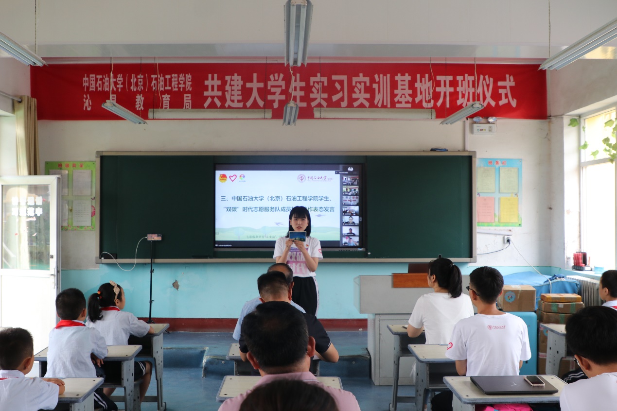 7月14日上午,中石大石油工程学院举办“七彩假期共育‘未来苗’,环保科普共筑‘双碳梦’”暑期夏令营开营仪式。启动仪式采取线上线下相结合的方式进行,在山西省长治市沁县西关小学设立线下会场,在山西省长治市科学技术局、教育局、中石大石油工程学院设立线上会场。