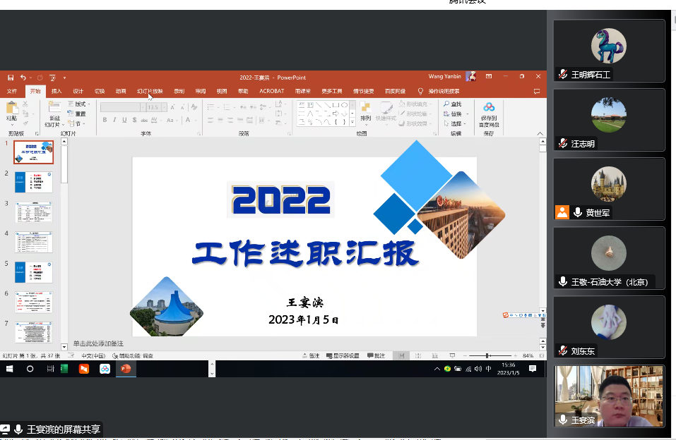 2023年1月5日下午,石油工程学院召开处级干部2022年年度考核述职会议,会议采用线上腾讯视频的方式开展,全体教职工参加。会议由石油工程学院党委书记黄世军主持。