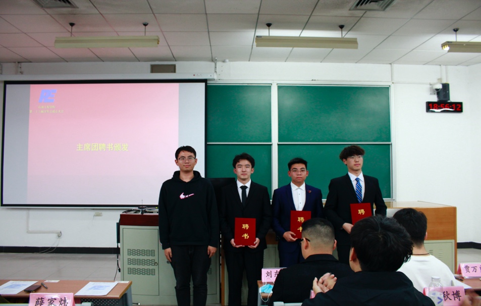 接下来,各部门的部长分别对自己部门的工作职能以及各个成员进行了介绍,展现了各部门的特点与风采。随后,各部门部长为新生干事颁发聘书。