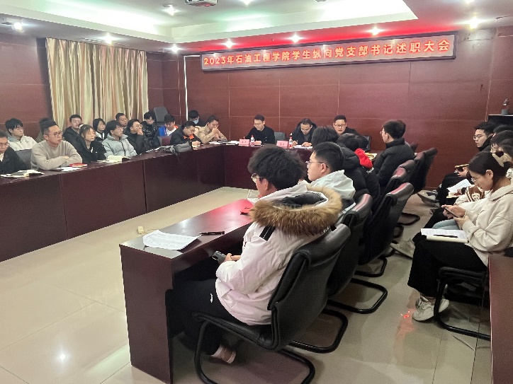 1月4日,石油工程学院开展2023年学生党支部述职评议会。党委学生工作部齐乐,石油工程学院党委副书记刘东东以及相关辅导员出席会议,学院全体学生党支部书记参加述职评议会。