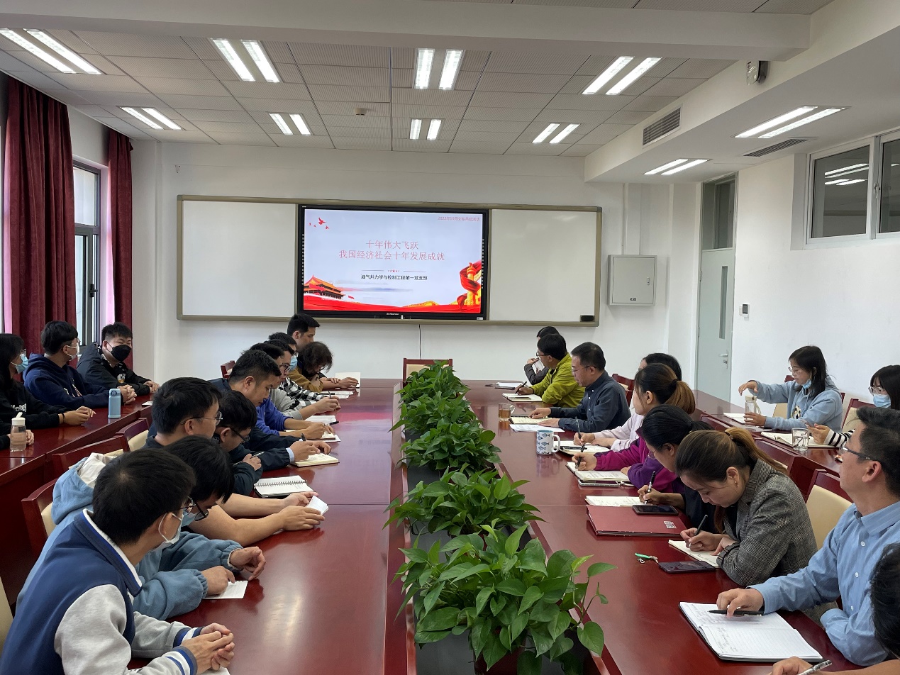 网络与继续教育学院刘艳萍从高等教育的地位作用、发展成效和未来目标三方面详细解读了高等教育十年发展所取得的伟大成就。油气井力学与控制工程第一党支部书记王捷力对我国经济社会在脱贫攻坚、创新驱动发展和生态环境保护方面所取得的伟大成就进行了解读。