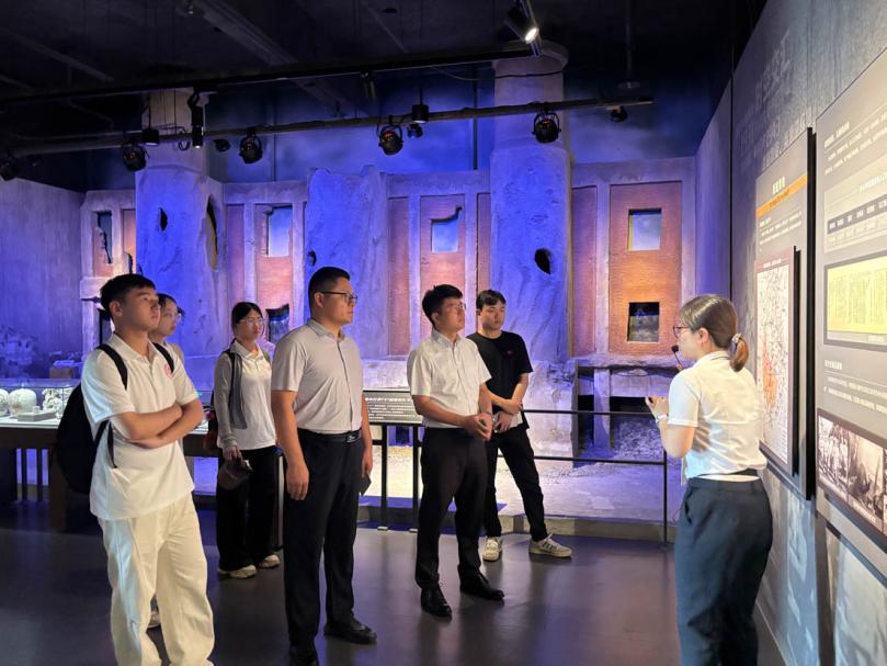 图为讲解员为实践团成员讲述日军发动细菌战的暴行