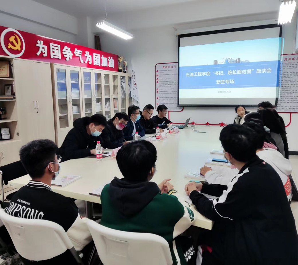 11月3日下午,石油工程学院2022级新生“书记、院长面对面”座谈会顺利举行。石油工程学院党委书记黄世军、院长宋先知、党委副书记刘东东、团委书记肖亚楠,2022级新生辅导员李季龙和10余名学生代表参加了会议,会议由李季龙主持。本次见面会旨在聆听新生的声音,解答新生学习生活中的困惑和问题。