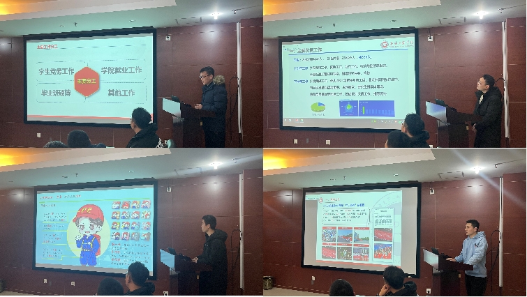 刘东东总结学院2021年学生工作取得的成绩与不足,对全体辅导员的辛勤付出表示衷心的感谢,希望各辅导员借助述职答辩会进一步总结经验,不断提高学生管理水平,创新工作方法,加强辅导员队伍专业化建设,为学院、学校的发展添砖加瓦。会上,各辅导员分别围绕辅导员本职工作、党团建设、视觉文化系统设计等方面进行展示和交流。