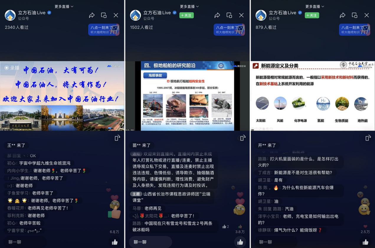 “云端课堂”系列科普课程由“立方石油”视频平台全程直播,累计播放量3万余人次、点赞达42万,长治市多所中小学参与其中,受益学生超过2000人。