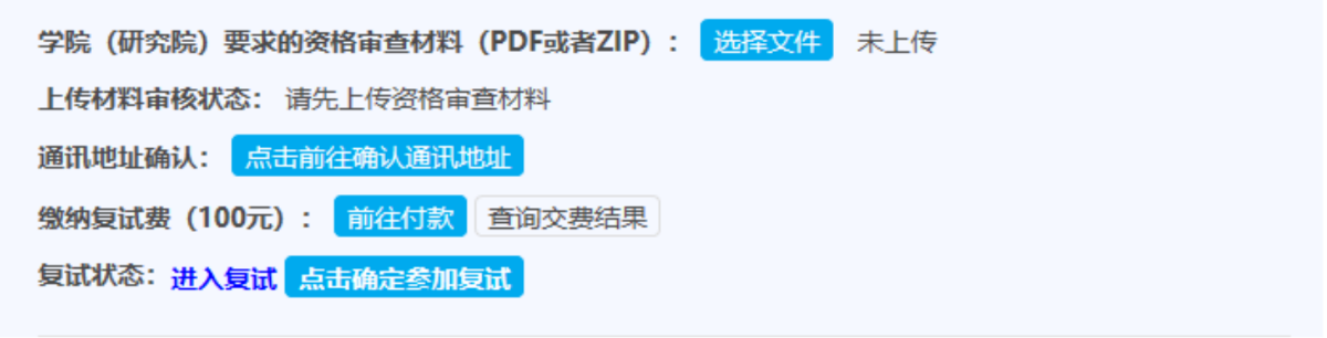所有进入复试的考生均须在2024年3月22日中午12:00点前,通过我校研究生招生管理信息系统(http://gmss.cup.edu.cn/logon)选择“硕士研究生复试录取”栏目完成“复试确认(资格审查材料上传、缴费)”、“意向导师选择”及时关注学校及学院复试安排,未按规定方式、时间复试的视为自动放弃复试资格。