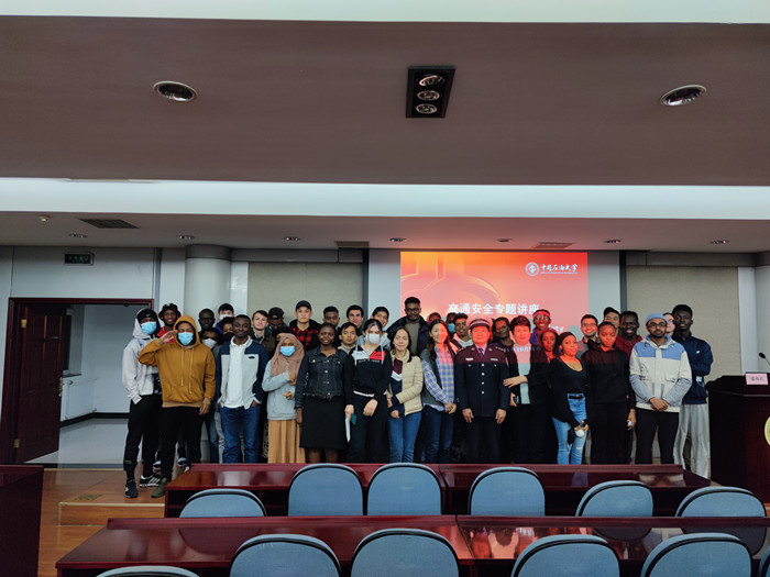 In order to further enhance the awareness of traffic safety laws and regulations and the awareness of safety and civilization among international students of China University of Petroleum (Beijing) and teach international students to care for lives, refuse to violate regulations, prevent road accidents, and build a safe campus, the College of International Education of China University of Petroleum (Beijing) specially invited the former Changping Traffic Detachment policeman, Police Officer Liang Shangli, a member of the Beijing North Vehicle Administration and Changping District’s Case Interpretation Team, gave lectures on traffic safety for international students in Conference Room 306 of the International Exchange Center.