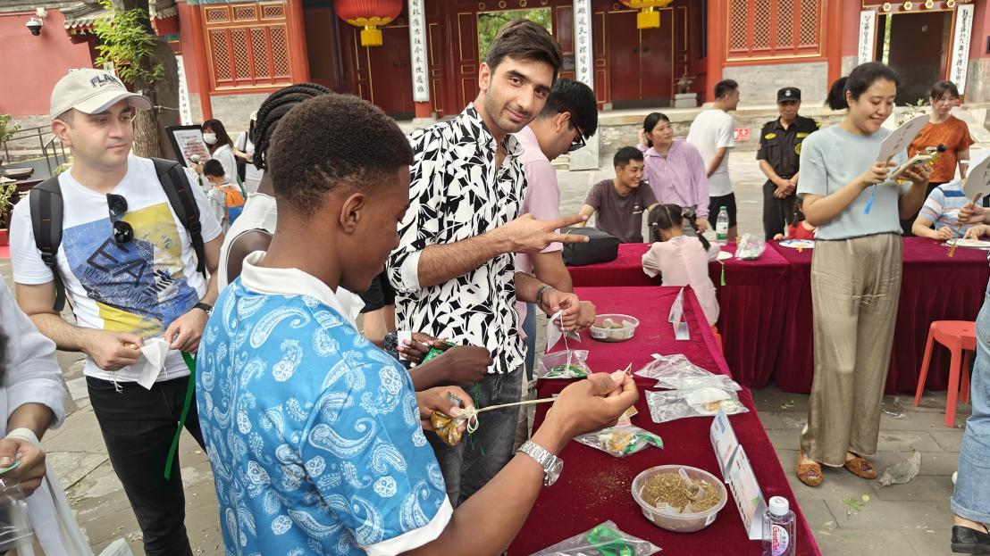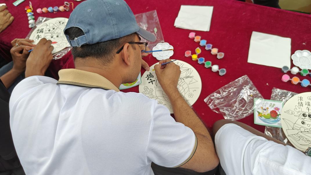 在活动现场,来华留学生体验了端午制扇、制作艾草香囊等端午特色活动,感受沉浸式的端午节日活动氛围。