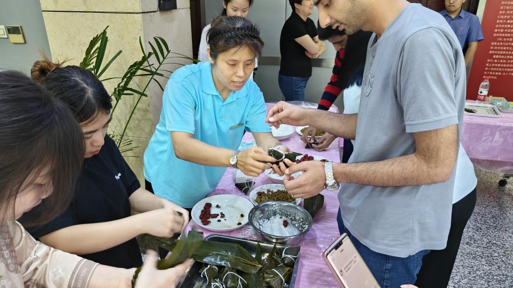 活动现场设置了包粽子等互动环节,让来华留学生体会到了传统节日特有的风俗民情。