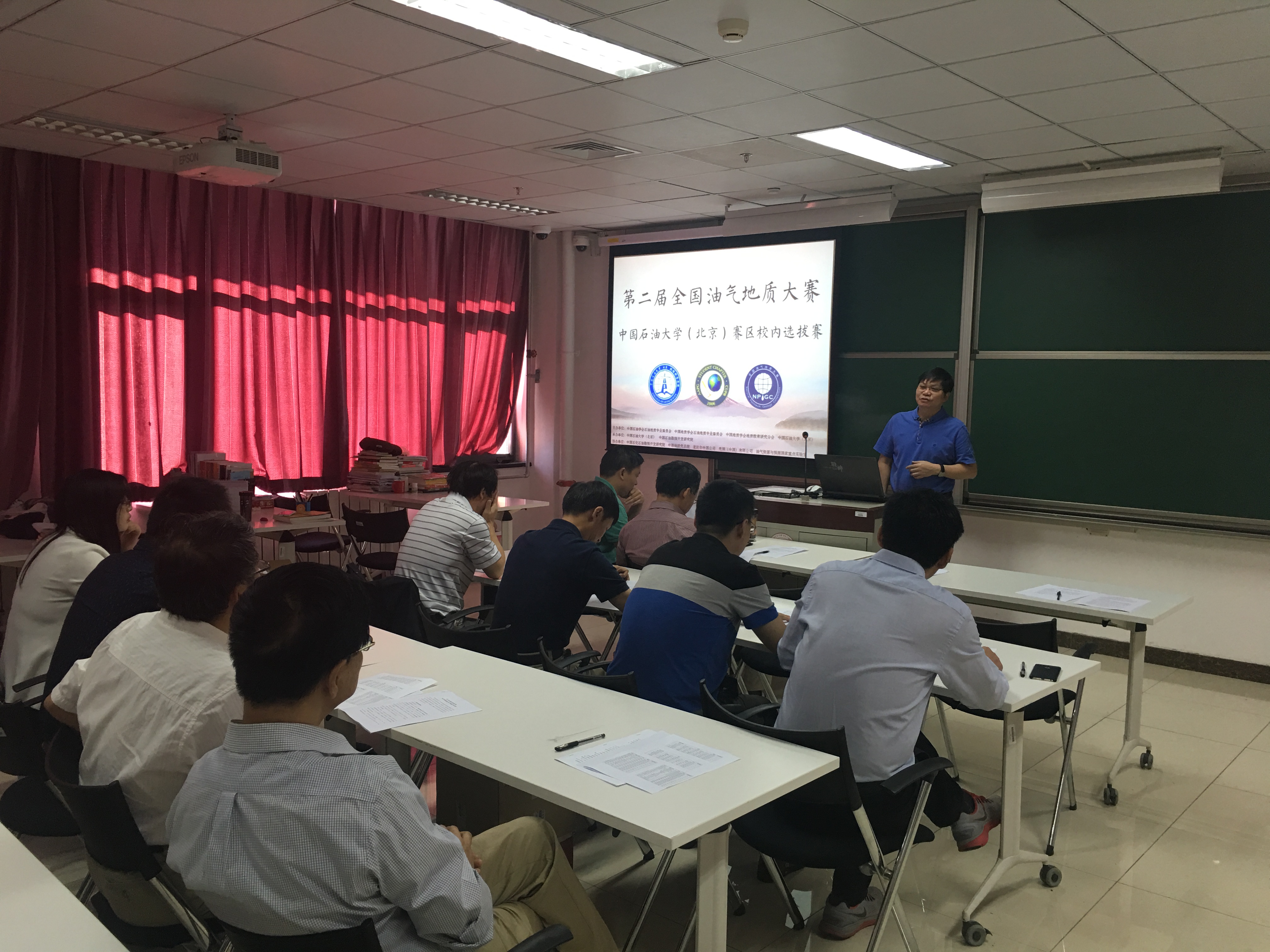 9月19日上午,第二届全国油气地质大赛中国石油大学(北京)赛区选拔赛在第四教学楼成功举办。从7月10日发布赛题至今,我校学子积极响应、踊跃报名,最终,共有12组综合组, 29组单项组选手参加赛区选拔赛答辩。地球科学学院院长曾溅辉,副院长陈冬霞、岳大力,地质学系教师钟大康、金振奎、于福生、鲜本忠、罗良、朱世发、陈石,油气勘探与开发地质系教师吴胜和、刘震、刘成林、高岗、刘钰铭、周勇,盆地与油藏研究中心教师余一欣出席了本次比赛并担任评委。