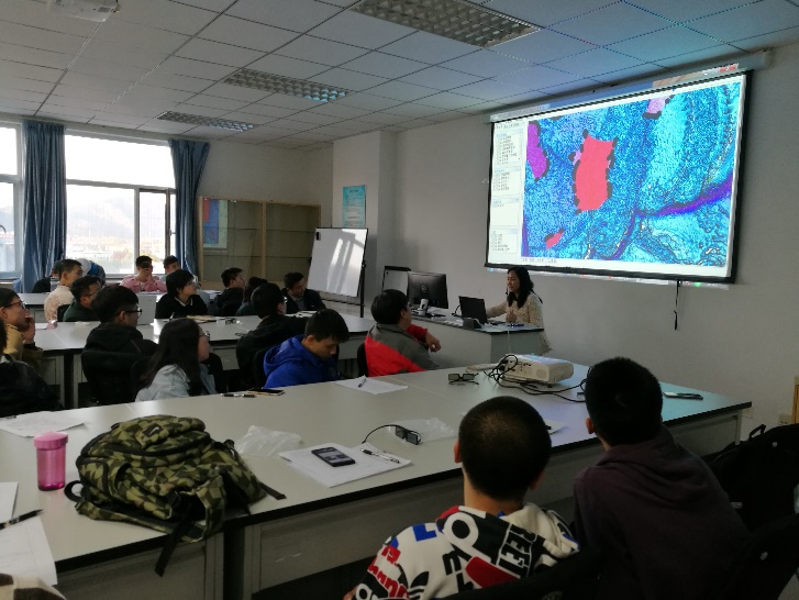 贾达吉博士长期从事石油地质和油田信息化技术研究和应用,设计开发的国际海洋划界系统整合了3DGIS技术、外大陆架划界地质研究和海洋划界法律研究,在3DGIS的应用方面有丰富的经验。贾博士带来了3D投影仪及3D观影眼镜,在沙龙开始前请与会师生观看精彩的3D图片。沙龙开始后,首先介绍了3DGIS(三维地理信息系统)技术及其运用的广泛性及重要性,联合实例指出国内外应用主要集中在智慧油田、智慧城市、防灾减灾、板块运动等领域,接着以“油气勘探数字地形及地理影像应用研究”及“外大陆架划界与国际海底资源关系评估辅助决策系统”两个项目为例,同时展示项目的3D图像资料,强调3DGIS在地学研究中应用的重要性。贾博士认为未来3DGIS将会发展为4DGIS,并在物联网、5G传输、云计算、移动互联网、区块链等科技领域得到飞速发展。