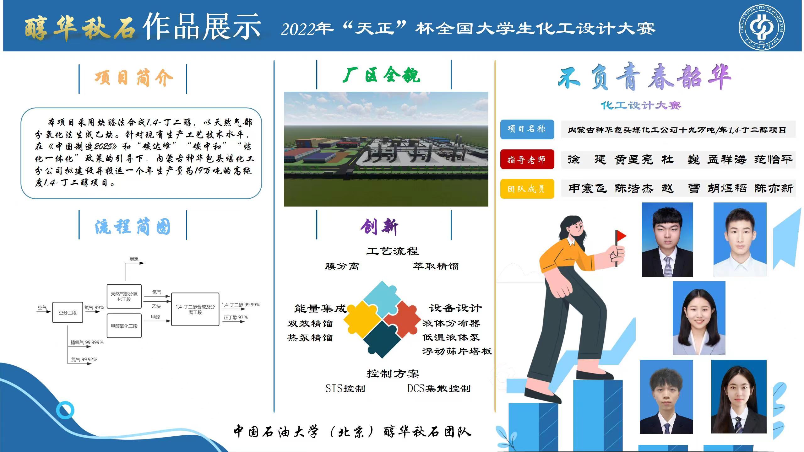 在“双碳”战略背景下,“醇华秋石”团队采用炔醛法合成1,4-丁二醇,以天然气部分氧化法生成乙炔,拟在内蒙古神华包头煤化工分公司投运一个年生产量为19万吨的高纯度1,4-丁二醇项目。