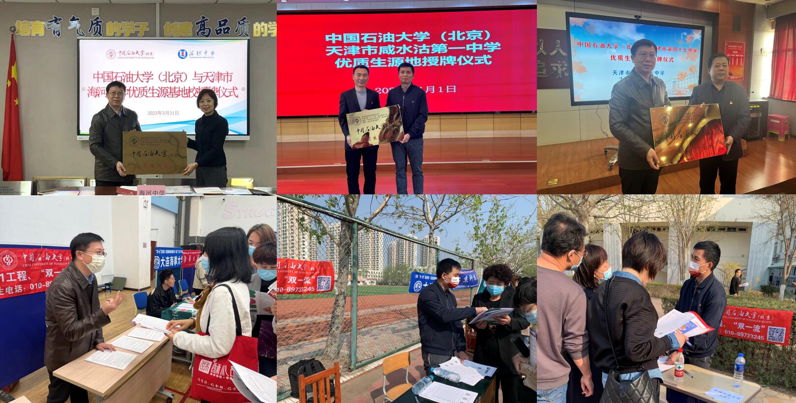 3月31日至4月1日,化工专业负责人孟祥海教授和能化专业负责人吴志杰教授代表学校赴天津市三所中学开展本科招生宣传,签署优质生源基地建设合作协议,并举行基地授牌仪式。此次本科招生宣传活动由天津日报社组织,天津大学、中国石油大学(北京)、北京科技大学等30多所高校参加。3月31日下午在天津市海河中学宣传,4月1日上午在天津市咸水沽第一中学宣传,4月1日下午在天津市第四十七中学宣传。此次招生宣传向天津市广大高中生和家长发放学校招生宣传材料,介绍学校人才培养特色与专业设置,解答学生和家长关心的填报志愿、专业选择、转专业、联合培养、就业情况、读研情况等疑问,让更多的学生和家长了解学校,提升了学生和家长对学校的认可度。