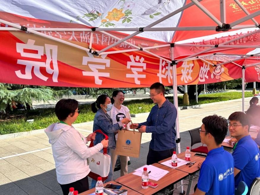10月1日当天第一个报到的校友是2011级博士周勇水,现就职于中原油田专家,由地学院姜福杰书记亲自迎接,校友在学院校友签名墙签名留念,与在场接待人员亲切交谈,互相慰问,分享工作经历,并表示会继续加强与母校的联系交流。