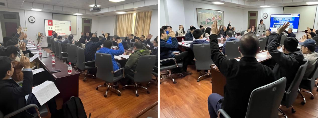院长王贵文代表学院做2023年度工作报告、学院办公室主任王宣赫作学院2023年度财务报告、学院工会主席牛花朋作学院工会2023年度工作及财务报告。副院长刘钰铭就《学院年度考核办法与赋分体系(2024年修订稿)》修订重点进行了解读。