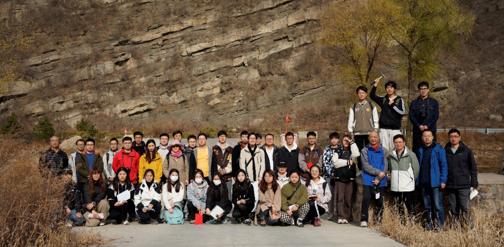 2023年11月3日-5日,地球科学学院“沉积岩石学与层序地层学”教学团队组织学院师生赴河北滦平盆地开展野外教学研讨与党建活动。本次活动由国家教学名师、教学团队负责人朱筱敏教授带队并主讲,北京市教学名师柳广弟教授、季汉成教授,地质学专业负责人、地质学系主任朱世发教授,以及张琴教授、葛智渊教授、王俊辉副教授和38位同学(包含博士生、硕士生及4名本科生代表)参与了此次学习活动。