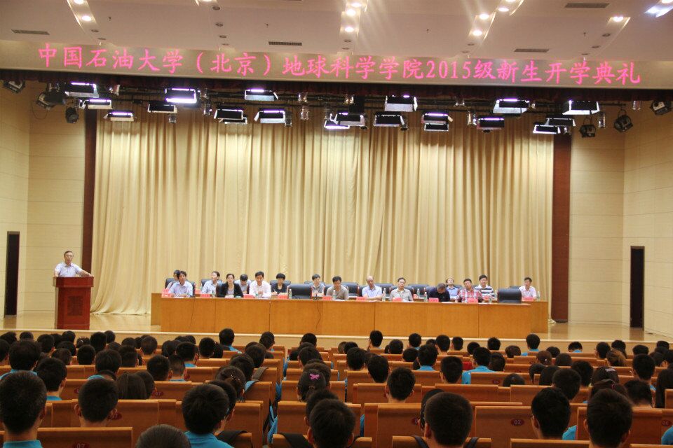 9日上午,地球科学学院2015级新生开学典礼在中油大厦报告厅举行。中国石油大学校党委副书记刚文哲教授、副校级干部鲍志东、地球科学学院院长柳广弟、党委书记刘洛夫及部分教职工代表、全体2015级新生出席了开学典礼。会议由刘洛夫书记主持。柳广弟在讲话中对全体2015级新生提出了希望,指明了努力方向。