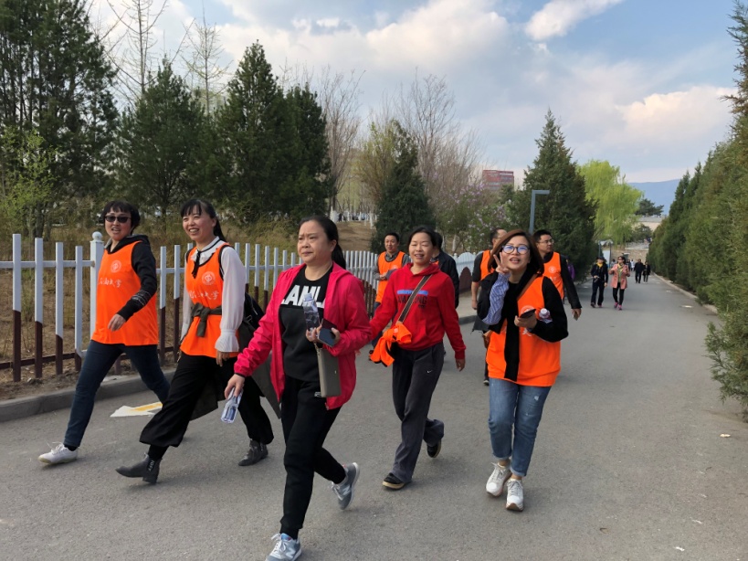 2019年4月11下午,在院工会的组织下,我院教职工三十余人参加了在昌平区滨河公园举办的“迎国庆、健步行”暨第八届“走向健康”教职工春季长走活动。