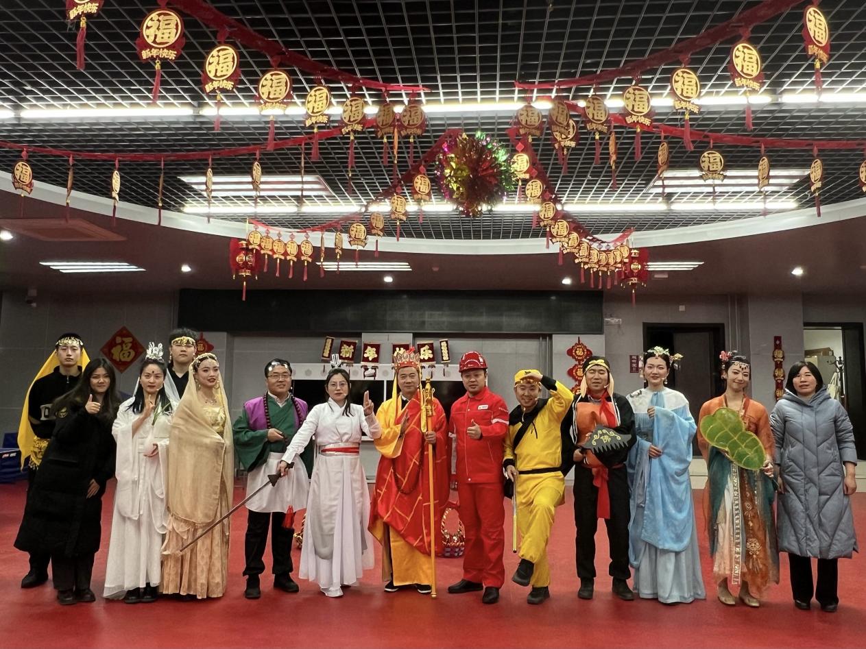 接到学校将举办元旦联欢会的通知后,学院迅速组建创作团队,利用课余时间研讨剧本,将石油地质专业特色与脍炙人口的故事结合,融入教育情怀,参演教师们克服教学科研任务重的困难,坚持十余次晚间和周末排练,全员零缺席。
