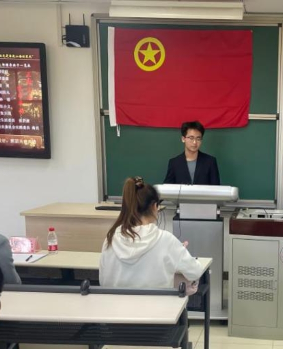 优秀团支部评选答辩开始前,校团委张乐老师进行动员讲话,提到各团支部要紧紧团结凝聚在党中央的周围,发挥好团支部的政治性和青年团干部的表率性。