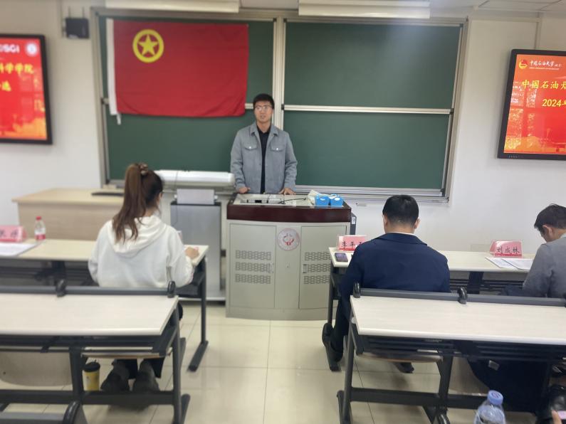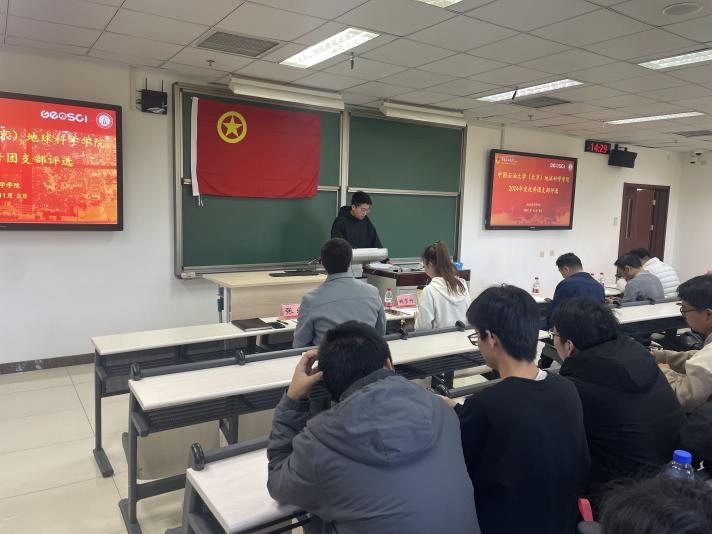 为深入学习贯彻党的二十大精神,落实习近平总书记关于青年工作的指示精神和相关要求,加强学院共青团基层组织建设,地球科学学院于2024年11月5日下午,在四教507教室组织进行2024 年度“优秀团支部”评选答辩。中国石油大学(北京)教务处副处长李平平教授、校团委正科级干事张乐老师、地学院刘成林教授、地学院团委书记姚梦竹老师、辅导员刘俊鑫、杨耀东、孟笑担任评委,会议由辅导员马文龙主持。
