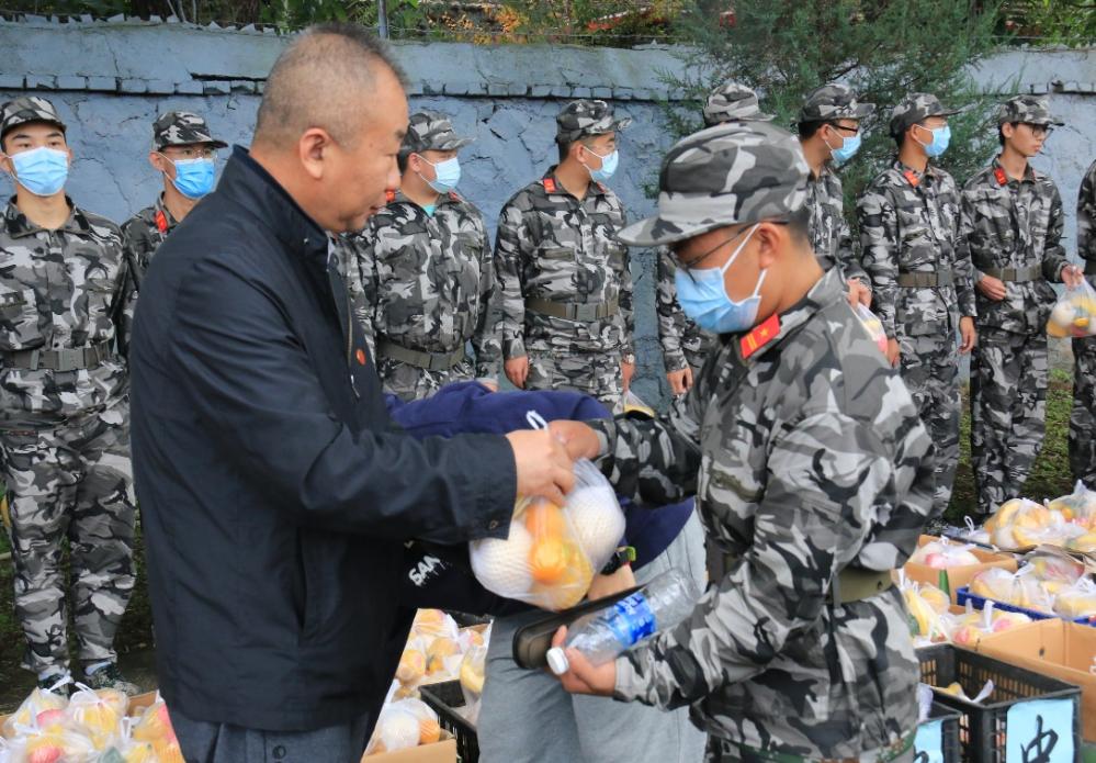 在军训基地,党委书记王贵文前往训练场、宿舍等场地探望2020级、2021级军训学生,并与学生亲切交谈。他表示,我国油气勘探近期取得了巨大的成果,希望大家可以在军训中提高自己的身体素质和心理素质,助力国家的油气勘探事业,同时,今天也是中国的传统节日中秋节,祝全体同学中秋快乐,身体健康学业有成。值此中秋佳节,学院为军训学生准备了月饼、水果等慰问品,党委书记王贵文和党委副书记王茹亲自为学生和教官发放慰问品,并送上中秋祝福。慰问品发放结束后,学院领导与参与军训的同学们共进午餐。