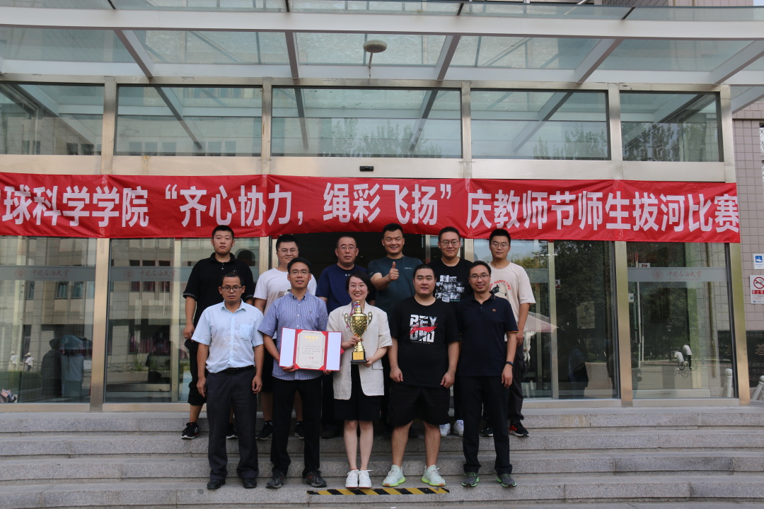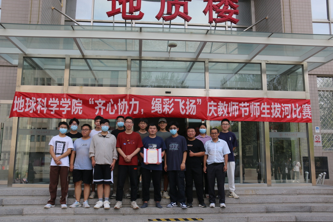 为庆教师节、贺中秋佳节,丰富教职工的校园文化活动,提升学院师生向心力和凝聚力,2022年9月9日中午12:30,地学院工会、地学院研究生会在中国石油大学(北京)南校区地质楼前举办了“齐心协力,绳彩飞扬”师生拔河比赛。