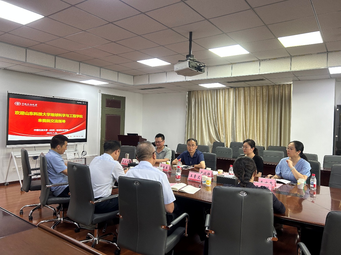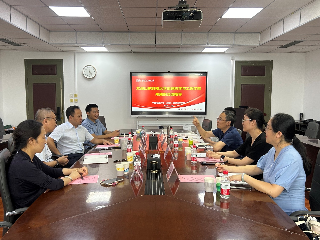 2025年7月25日下午,山东科技大学地球科学与工程学院院长常象春一行来我院走访交流。学院党委书记姜福杰、院长王贵文等接待了常象春一行。