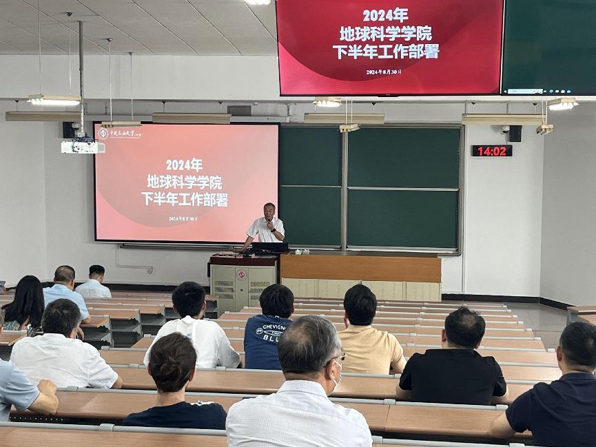 为全面贯彻党的二十大精神,深入学习贯彻习近平总书记关于教育的重要论述和重要回信精神,落实“中华人民共和国国民经济和社会发展第十四个五年规划”,对照落实《中国石油大学(北京)2024年工作要点》,8月30日下午,地球科学学院召开了2024年下半年工作部署会。地球科学学院全体教师参加了会议,会议由学院党委书记姜福杰主持。