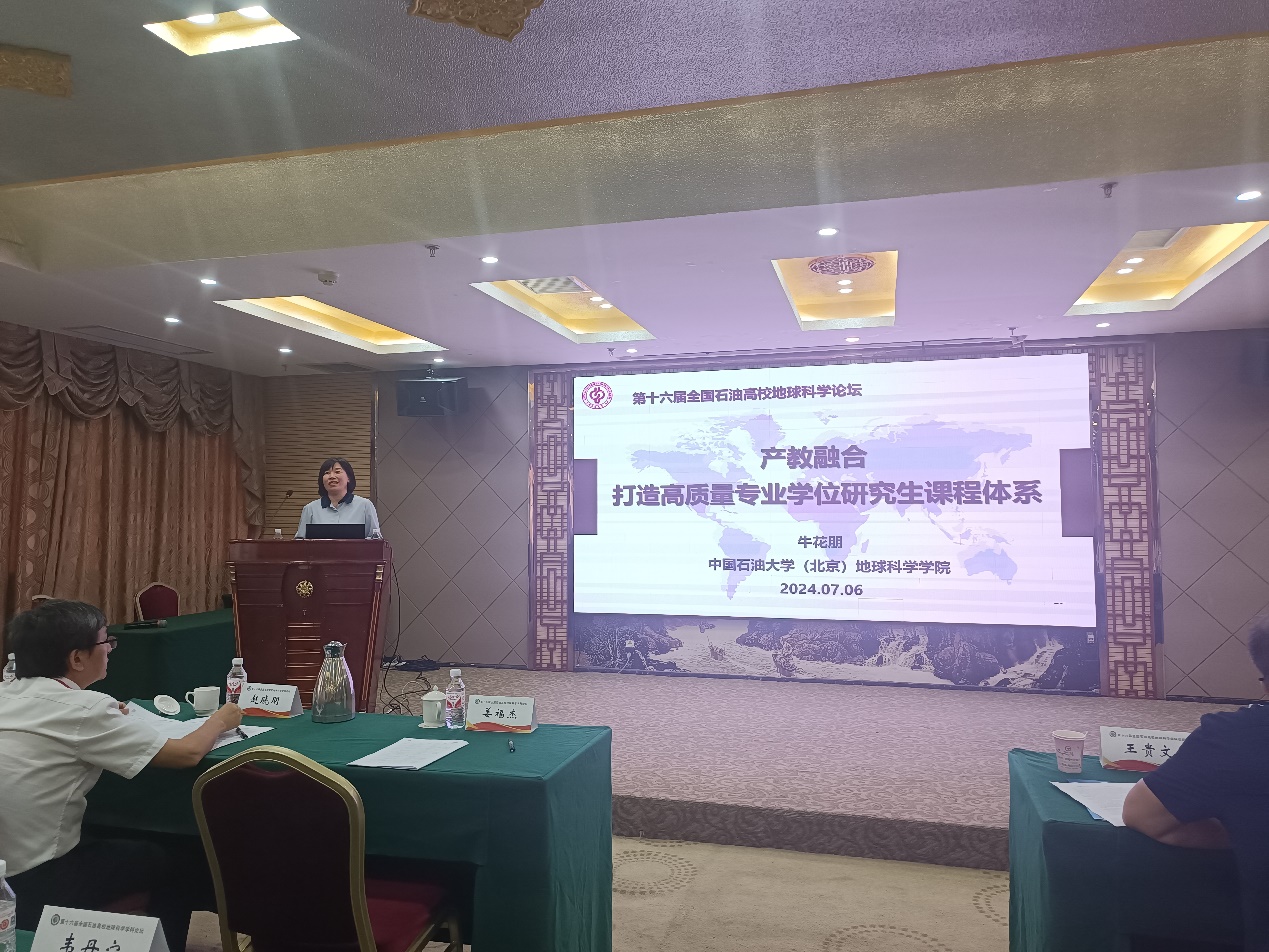 地球科学学院书记姜福杰应邀作了论坛发起单位代表致辞;副院长刘钰铭和牛花朋分别作了题为《一流学科建设背景下资源勘查工程专业人才培养体系构建与成效》和《产教融合打造高质量专业学位研究生课程体系》的专题报告;院长王贵文进行了会议总结,同时宣布下一届会议由西南石油大学承办并进行了授旗仪式。