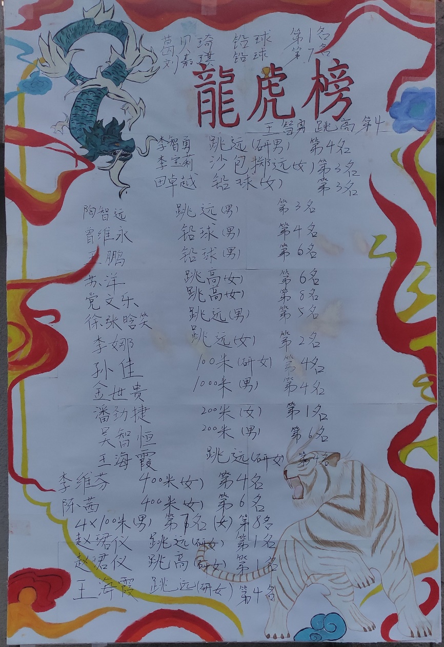 全院共24名参赛运动员获奖,其中第一名3人,1人连获两个第一名,第二名2人,第三名3人,4×100米研究生女子组获第三名。具体获奖名单如下: