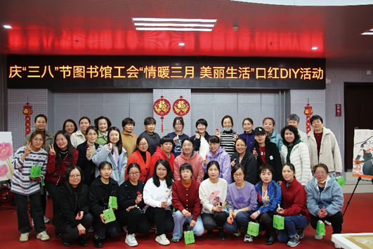 ] 为庆祝第113个国际劳动妇女节,3月6日至8日,图书馆工会在图书馆一层大厅、职工之家举办了“书香温润,‘阅’见美好”庆祝“三八”妇女节专场阅读推广活动以及庆“三八”节“情暖三月,美丽生活”口红DIY活动。