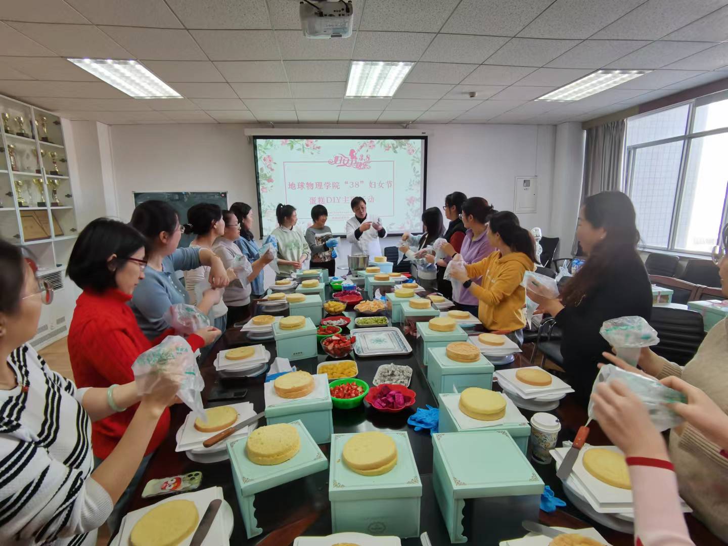 ] 人间最美三月天,春花烂漫展新颜。为庆祝“38”国际妇女节,丰富学院女教工的精神文化生活,节日当天,地球物理学院工会开展了“38”妇女节蛋糕DIY主题活动,学院约20名女教工参加活动,共同欢庆属于自己的节日,共享春日美好“食”光。
