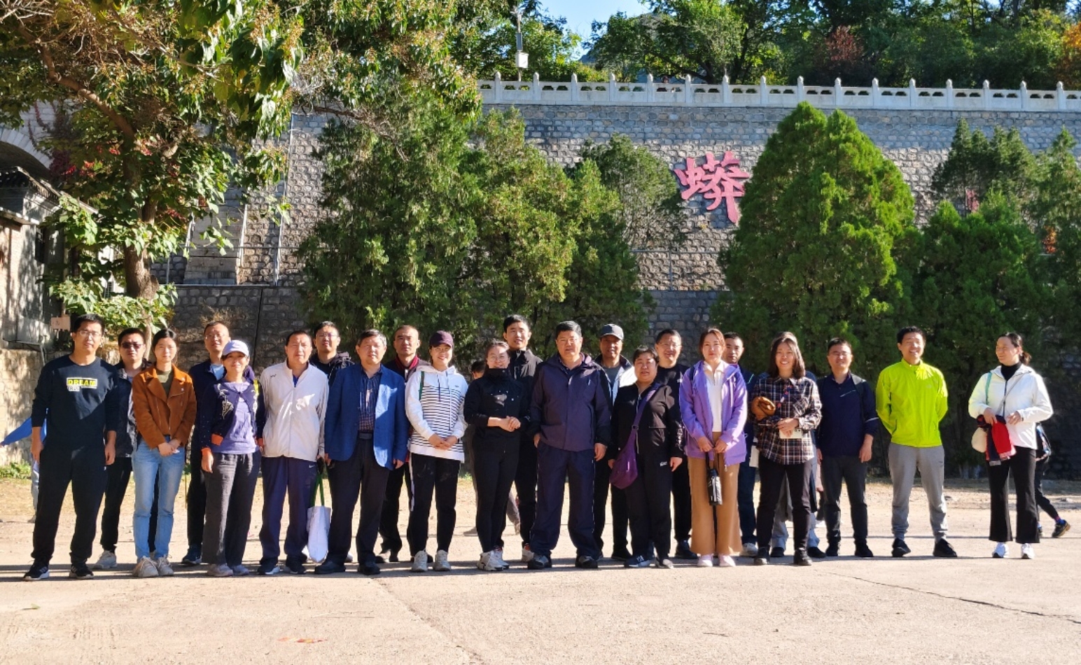 ] 秋天,阳光温馨恬静,秋风和煦轻柔,蓝天白云飘逸悠扬。为提高教职工身体素质,丰富教职工业余文化生活,化学工程与环境学院工会于10月15日上午组织教职工开展了攀登蟒山活动。老师们三三两两组团爬山,你追我赶,经过一两个小时的攀爬,绝大部分老师都登上了蟒山的五观台,在宝塔下登高远眺,昌平城区尽收眼底,“会当凌绝顶,一览纵山小”的豪迈情怀油然而生。老师们脸上都洋溢着挑战成功的喜悦。