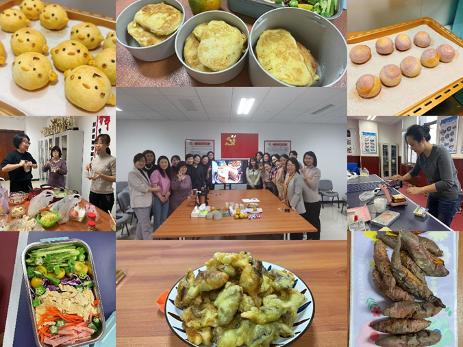 女教工们在家制作或现场制作了多种各具特色、色香味俱全的美食。有香浓可口的甜点、软糯细腻的烤蜜薯、五彩斑斓的沙拉拼盘、酥脆可口的炸蘑菇、酱香浓郁的微波金针菇,香辣火爆的冷火锅等。阵阵浓香诱惑着每个人的味蕾。大家从味感、观感、质感等多方面对不同美食进行品鉴,欢声笑语中互相介绍和学习美食制作经验。