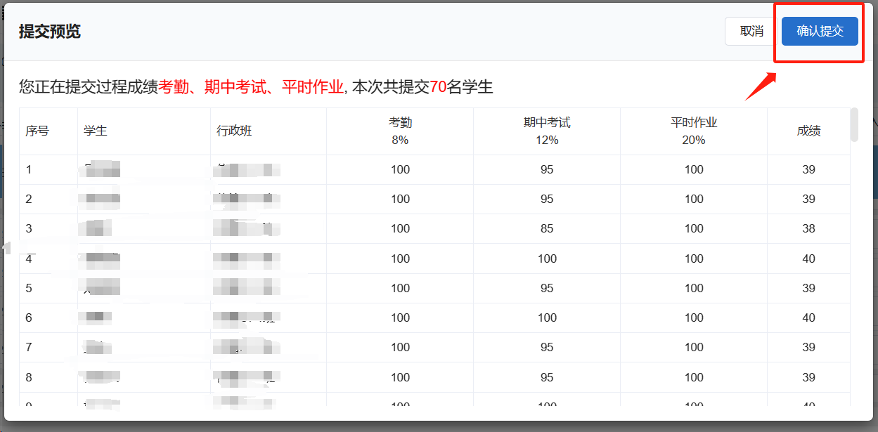 (1)手动录入:进入过程成绩录入页面,可以直接在学生后的成绩录入框录入对应的过程成绩,页面会实时保存已录入的成绩。