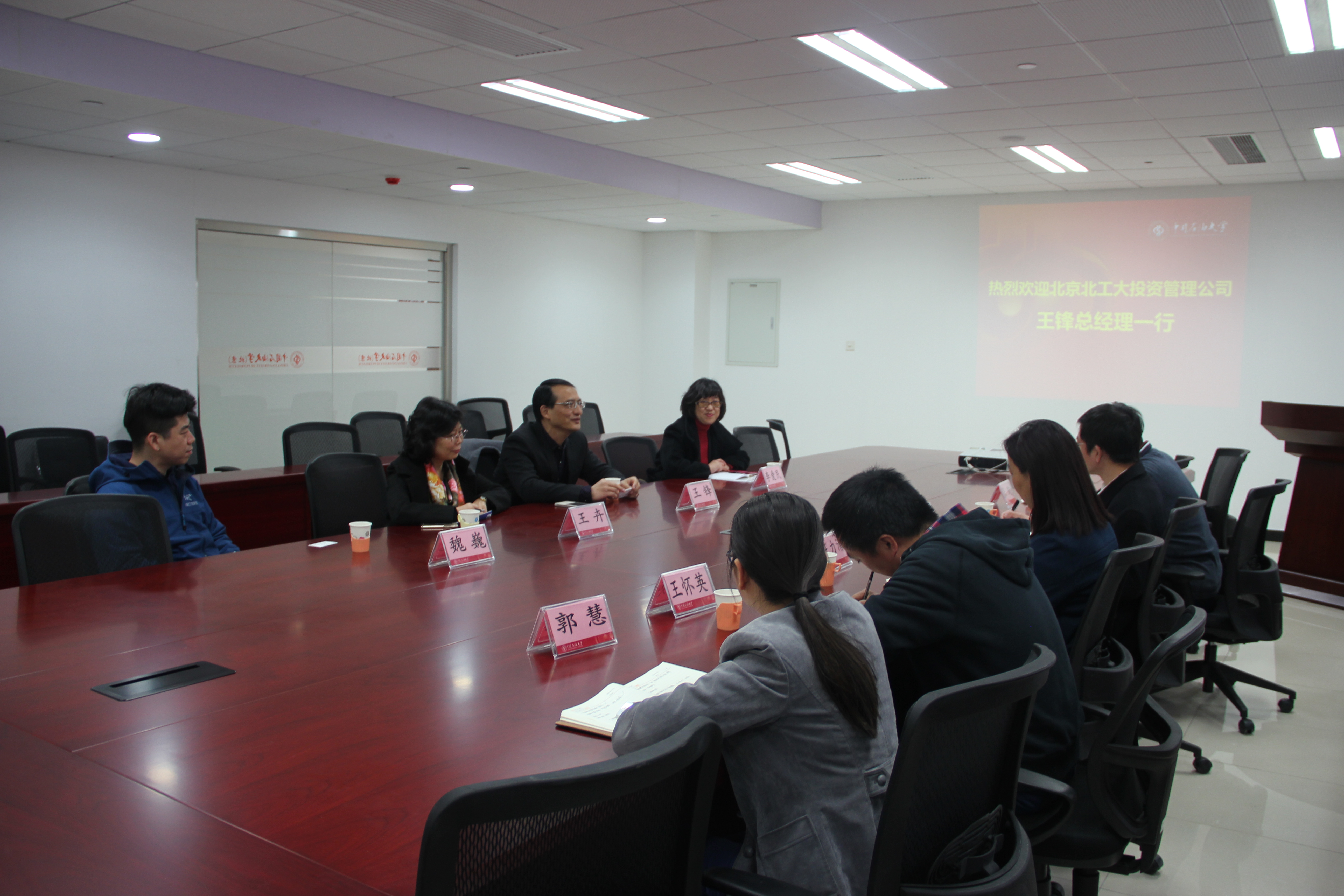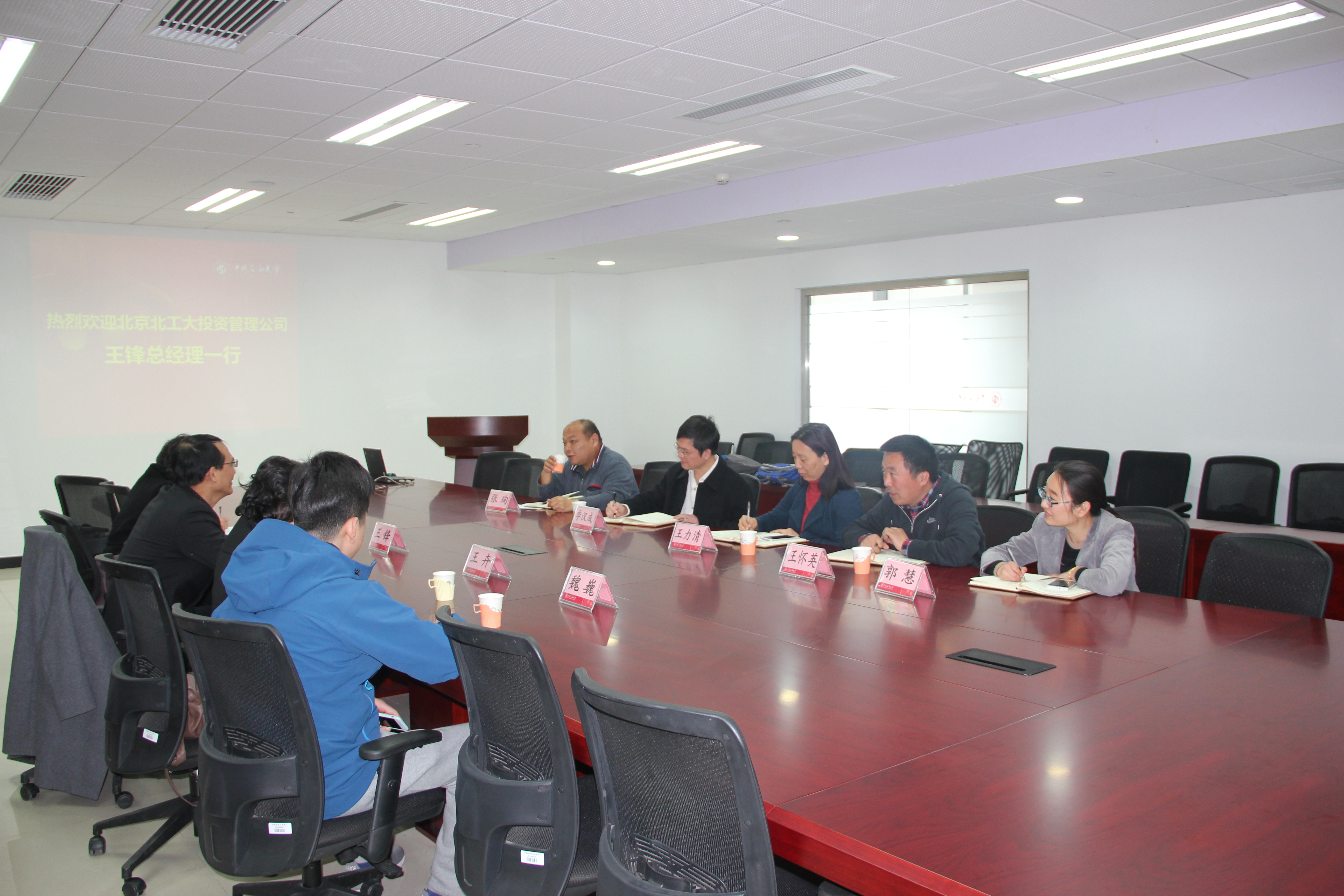 3月10日北京北工大投资管理有限公司总经理王锋一行来科技处走访交流,科技处处长季汉成、副处长王力清、校办企业总公司总经理张珣、科技处相关科室人员参加了此次交流会。