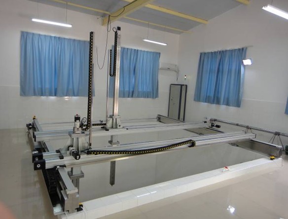 技术指标:双工作头定位系统,每个工作头4个自由度(三个平动自由度、一个转动自由度),三个平动自由度的运动范围分别为0-3800mm、0-3800mm和0-2700mm,平动自由度的定位精度为0.2mm,转动自由度的运动范围为0-360°。