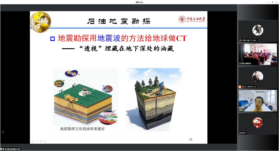 陈汉明老师从“认识地震和地震灾害”、“如何减轻地震灾害”和“怎样科学避震”三个方面进行了科普。安勇老师结合石油专业知识,介绍了石油在生活中的用途及地震勘探原理。课上,同学们认真听讲,积极提出问题,表达出对知识热切的渴望。